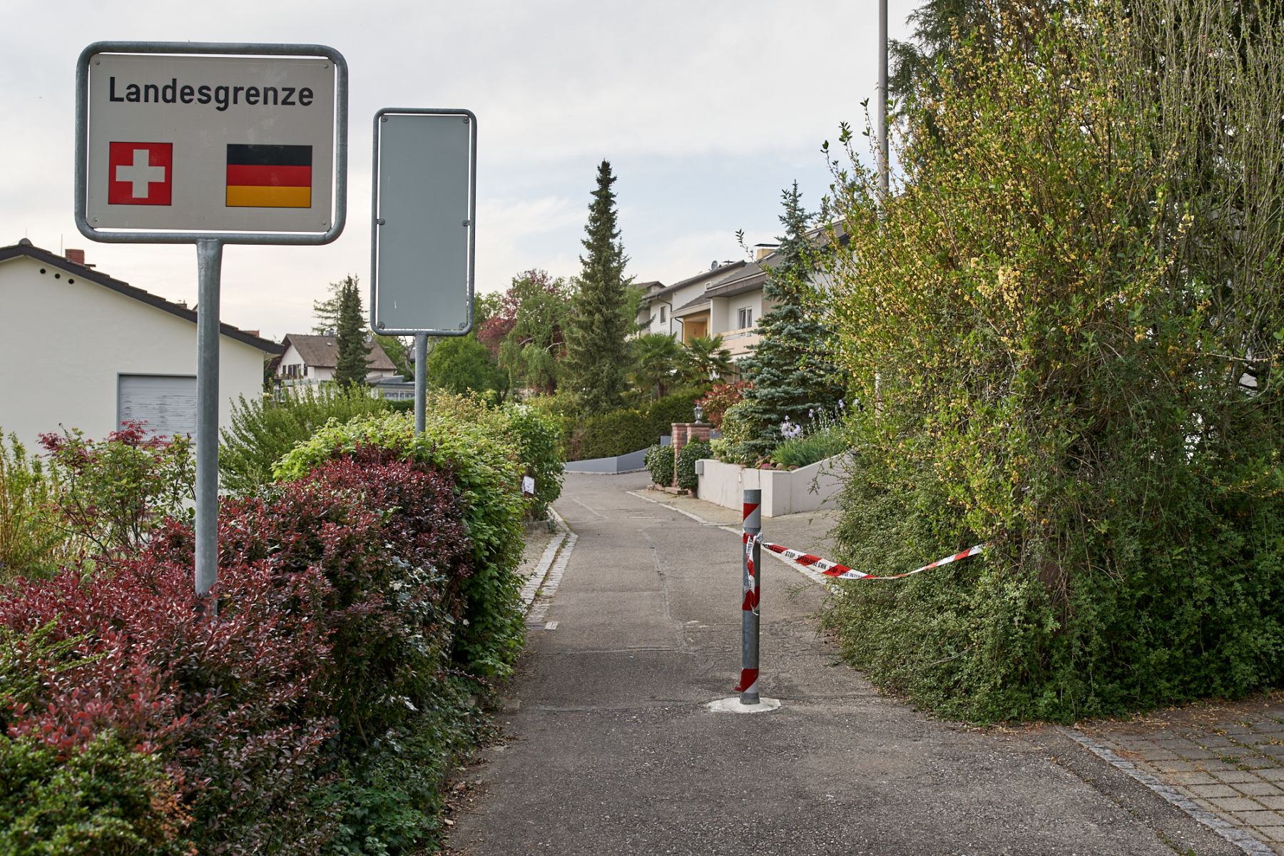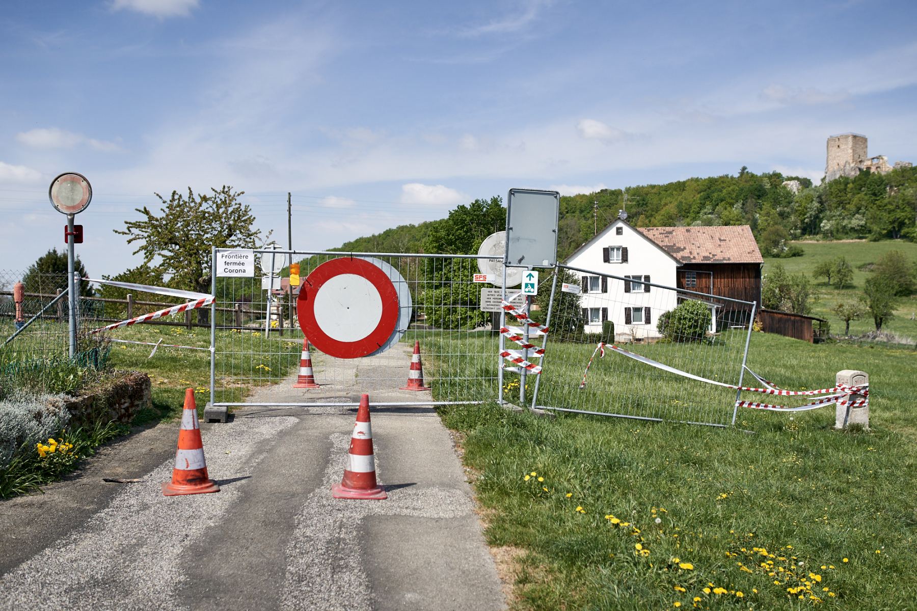 Zum Projekt: März 2020. In einem historischen Akt schliesst die Schweiz die Grenzen. Ich bin damals durch ein seltsam verlassenes Land gefahren und habe die geschlossenen Grenzen dokumentiert. Diese Bilder stehen nun als Plakate in der Landschaft und laden zur Erkundung des Grenzgebietes ein.